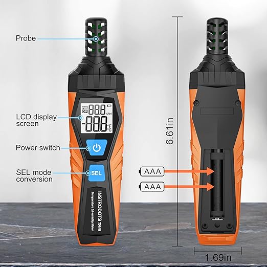 WIDELY APPLICABLE SCENES - The INSTRODOTS TH10 digital humidity and temperature meter can be used for a wide range of applications to know changes in environmental information in real-time, such as HVAC, industry, agriculture, meteorology, medicine, laboratory, warehouse management, paranormal investigator, wine cellar, machine room, data storeroom, food hygiene, etc.