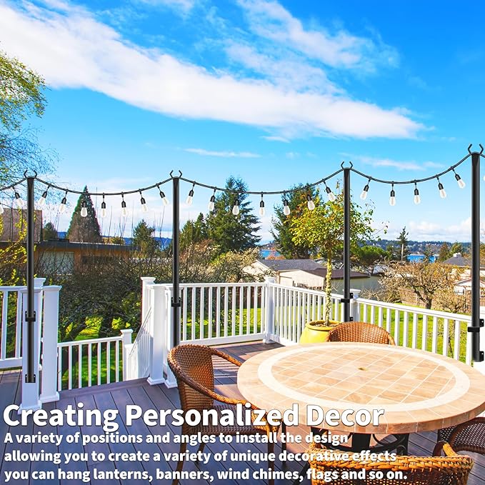 【Wide range of uses】AILBTON string light poles are suitable for outdoor needs such as backyards,decks and gardens,designed for hanging outdoor string lights,and can also be widely used for a variety of decorations,including banners,bunting,lanterns,etc, which can meet a variety of scenes and needs.