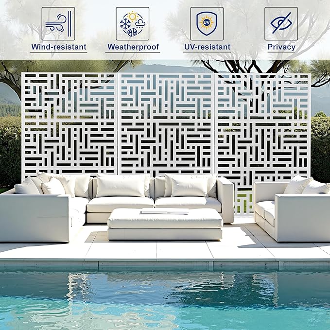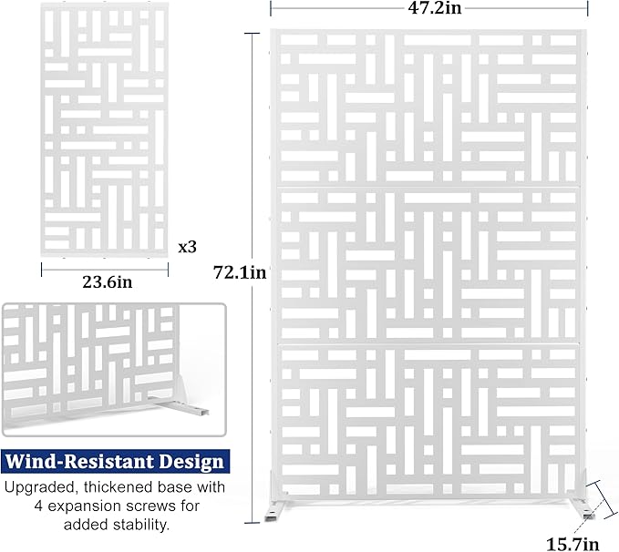 • 【Robust Metal Build】The metal privacy screen boasts a robust construction crafted from high-quality galvanized steel. Designed to endure the rigors of outdoor elements, its sturdy build guarantees prolonged durability.