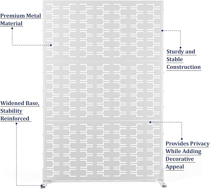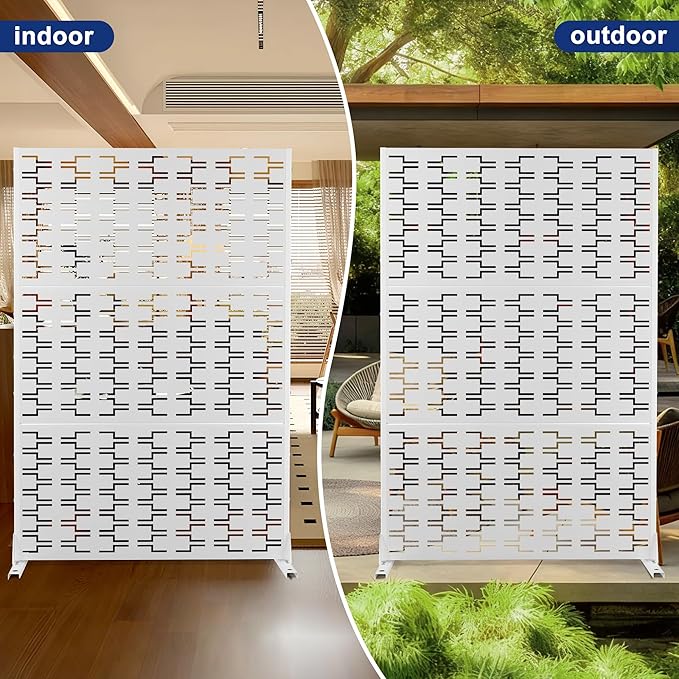 • 【Robust Metal Build】The metal privacy screen boasts a robust construction crafted from high-quality galvanized steel. Designed to endure the rigors of outdoor elements, its sturdy build guarantees prolonged durability.