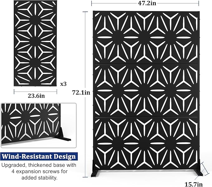• 【Robust Metal Build】The metal privacy screen boasts a robust construction crafted from high-quality galvanized steel. Designed to endure the rigors of outdoor elements, its sturdy build guarantees prolonged durability.