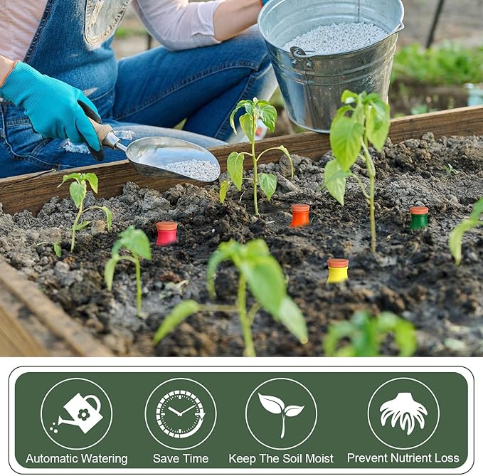 Ideal for Various Conditions: whether you are traveling, on a business trip, or preoccupied with work, these self watering planter insert are a good method to maintain your plants' hydration; Once filled with water, the device can function for up to three weeks, ensuring healthy plant growth; Forget about overwatering, under watering, or even forgetting to water your plants