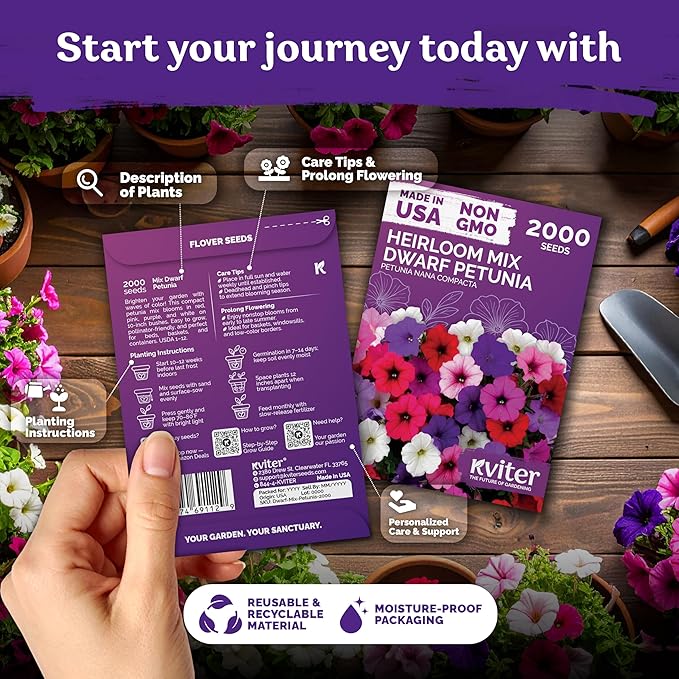 Non‑GMO Quality: 2,000 petunia seeds bulk arrive in flower seeds packets; open‑pollinated, untreated—premium organic seeds for conscious growers building colorful, pollinator‑friendly gardens.