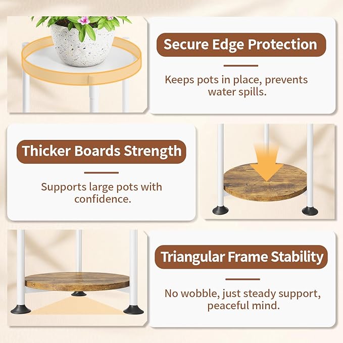 【Adjustable Feet for Any Surface】 No need to worry about uneven floors! The sturdy plant stand indoor large plants features three adjustable feet that keep it perfectly balanced, whether it’s on carpet, tile, or hardwood—plus, they also protect your floors from scratches.
