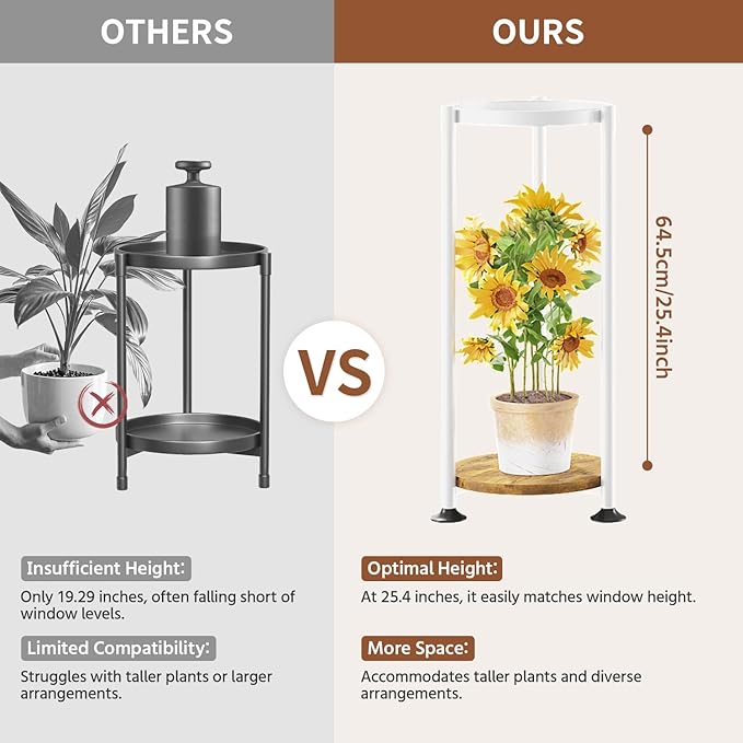 【Spacious for Your Growing Plants】The multi plant stand features a 25 inch space between layers, perfect for larger plants to spread and enjoy sunlight. Its slim, vertical slim design fits neatly into corners, maximizing your space without overcrowding.