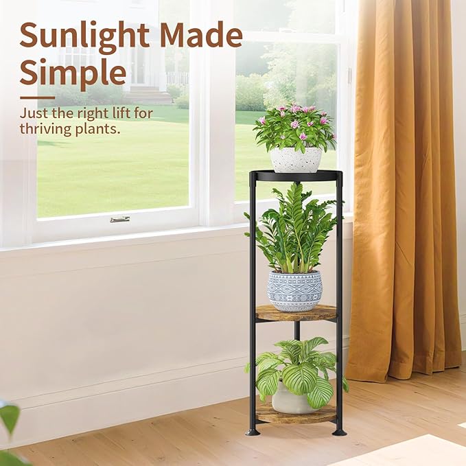 【Versatile Beauty Look】 A blend of sturdy black iron and burnt wood finish gives the plant stand indoor tall a sophisticated, versatile look. It fits seamlessly into various decor styles, from modern,farmhouse to rustic, enhancing your living space with effortless charm.
