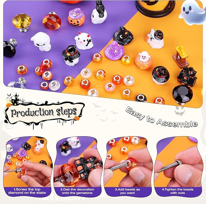Package Included: Thanksgiving decorations bead pile contains a variety of Halloween series elements, with colorful beads to help your garden add more style. You will receive a total of 358 products, including 12 crystal stoppers, 6 10-inch threaded rods, 6 12-inch threaded rods,240 beads, 12 Halloween decorations, 50 different Halloween pendants,12 screw caps, 20 glue dots.