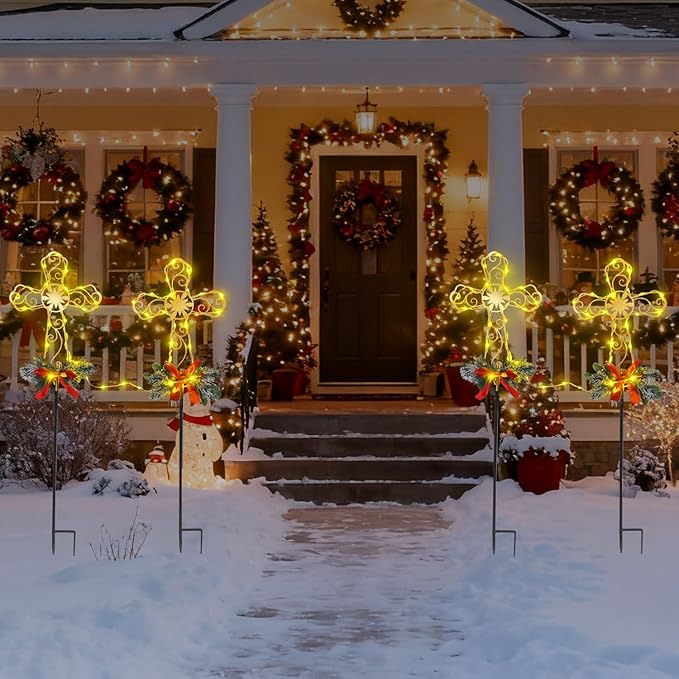 Simple Installation: Easy to assemble, just unfold the cross Christmas yard stake, twist the Christmas yard stakes decorations outdoor into the ground, and it's ready to use immediately with no tools required.