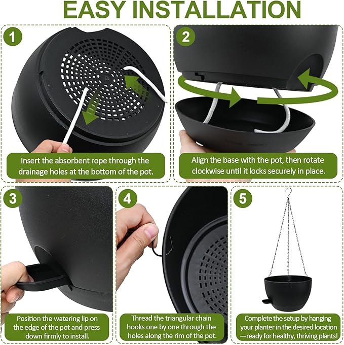 Durable, Hanging Planters, Self Watering, Versatile for Indoor & Outdoor Spaces, Weather Resistant