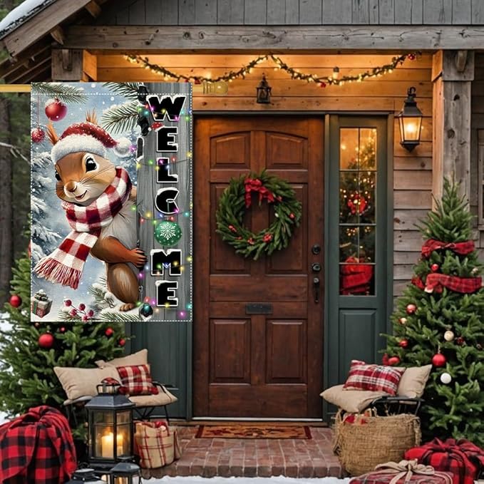 Christmas Garden Flag 28x40 inch The Nut Squirrel Welcome XMAS winter Garden Flags Yard Porch House Flag Double-Side For Home Outdoor Yard Patio Lawn Decor,Happy New Year merry Christmas banners for outside Decorations (RMQ-85, 28"X40")
