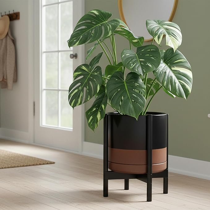 • A Complete Set: Mid-century ceramic planter, combined with a ebony wood stand that match perfectly together and looks great in anywhere.