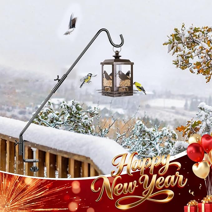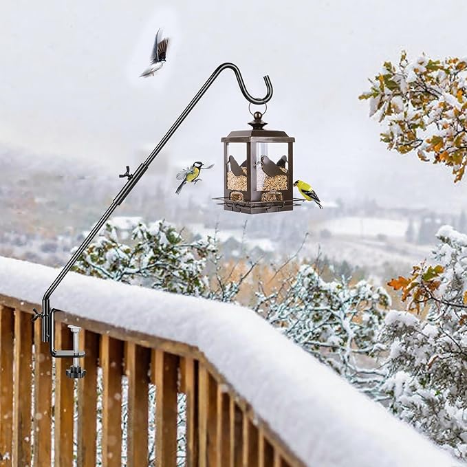 360-degree adjustable: Bird feeder hanger with swivel wing-nut design, can effortless adjust the angle, place feeder or planter away from deck for keeping neat. Keep seeds and bird droppings away from the deck, no need to clean up messes constantly
