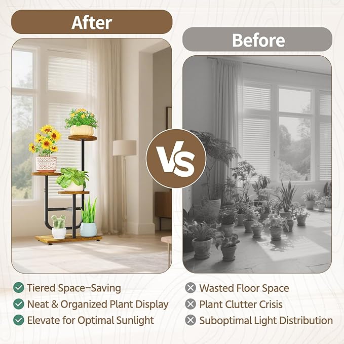 【Maximize Your Space】Turn that empty corner into a lush, green oasis! The vertical design lets you display up to 4 times more plants in the same footprint, making it perfect for apartments and small homes. Every inch of space is put to good use.