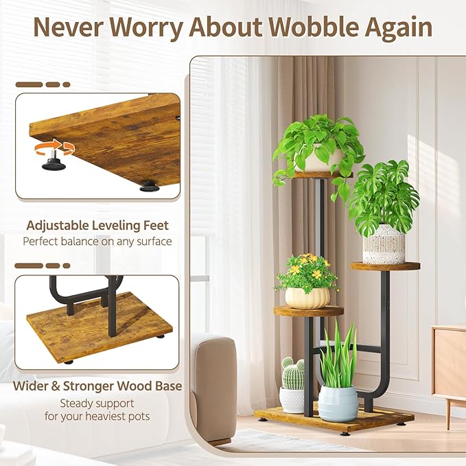 【Built to Last】Say goodbye to wobbly stands! The wooden plant stands is crafted from industrial-strength metal and reinforced wood, making it ultra-sturdy. It can easily handle even your heaviest pots, giving you peace of mind that your beloved plants are secure and protected.
