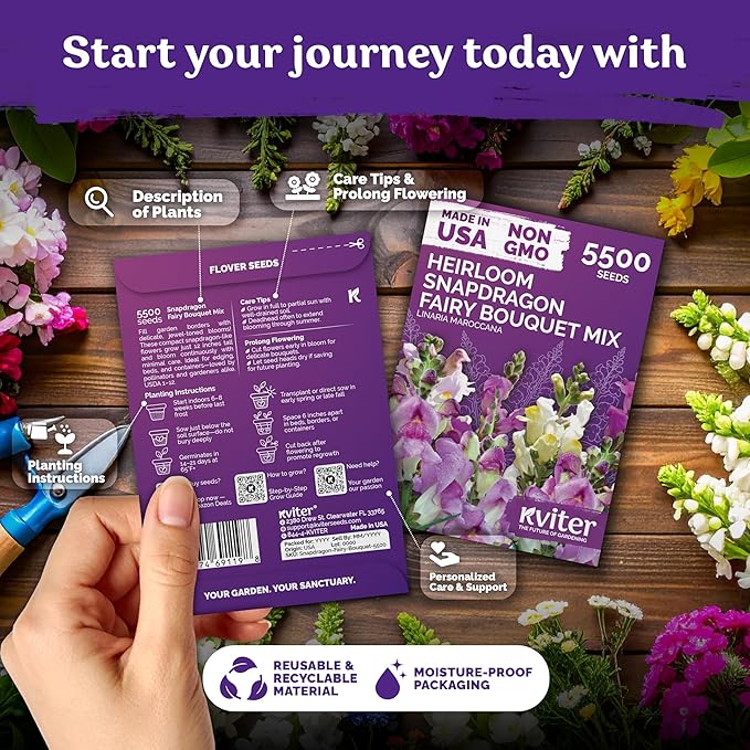 Generous Mix & Value: 5500 snapdragon seeds bulk fill wildflower-style seed packets, edging paths or small spaces with heirloom seeds that self-sow and return vibrant blossoms next year.