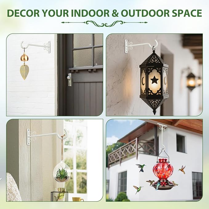 Mutil Purpose: Plant hanging brackets are suitable for both indoor and outdoor use by hanging bird feeders, bird bath, planters, lanterns, holiday decorations, string lights, wind chimes, ornaments, candle holders, path lights, and more