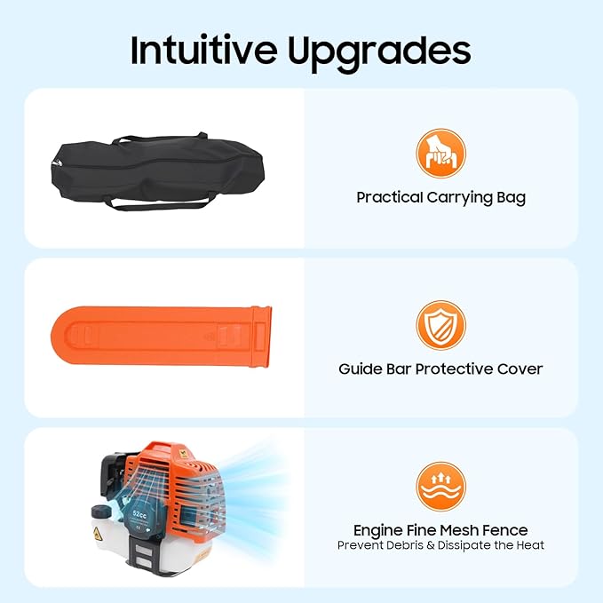 Easy to Assemble& Start: A full range of accessories and simple construction allow you to install and use it quickly. It adopts a professionally optimized starting mechanism, pulling the handle can be a light and effortless quick start. A powerful magnetic ignition mechanism ensures easy starting and smooth operation.