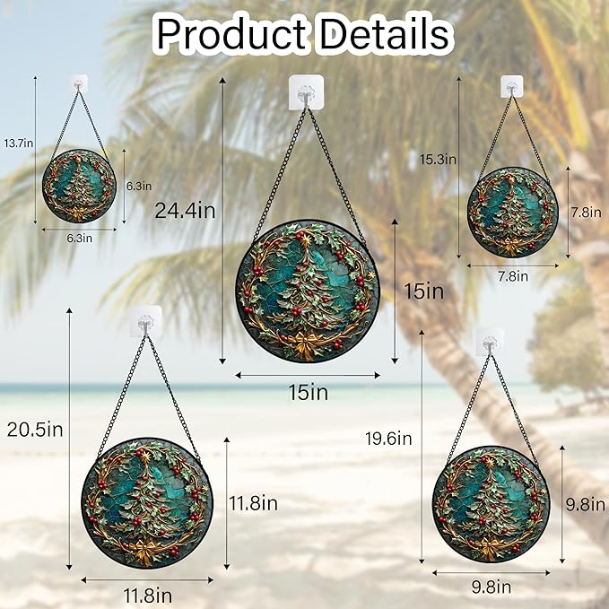 Vibrant Holiday Ambiance: The stain glass window hanging intricate Christmas designs—from snow-laden pines to jolly Santas—boast sharp, fade-resistant clarity that stays vibrant even after years of sun exposure, ensuring every festive detail pops.