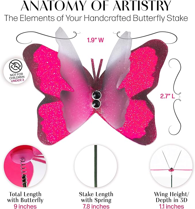 EASY CARE & NO ASSEMBLY REQUIRED – Your 7-pack of butterfly stakes arrives ready to use. Simply place the sturdy metal rod in your favorite planter or garden spot; no tools or complicated setup needed