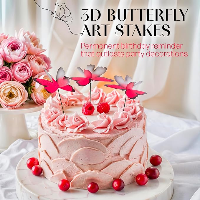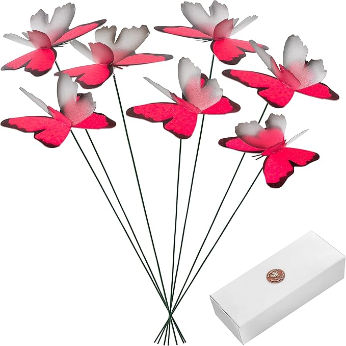 Handmade Glowing Pink Butterfly Garden Stakes - Set of 7 Premium 3D Hand-Painted Butterflies with Fluttering Spring Movement, Weatherproof Metal Rod, Outdoor Indoor Decor, Ideal Gift