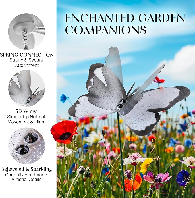 🌬️ LIFE-LIKE MOVEMENT with Flexible Spring Mount – The 3D wings are mounted on a flexible spring for a magical, realistic flutter, adding movement and joy to your balcony, patio, or flowerpots.