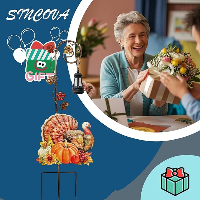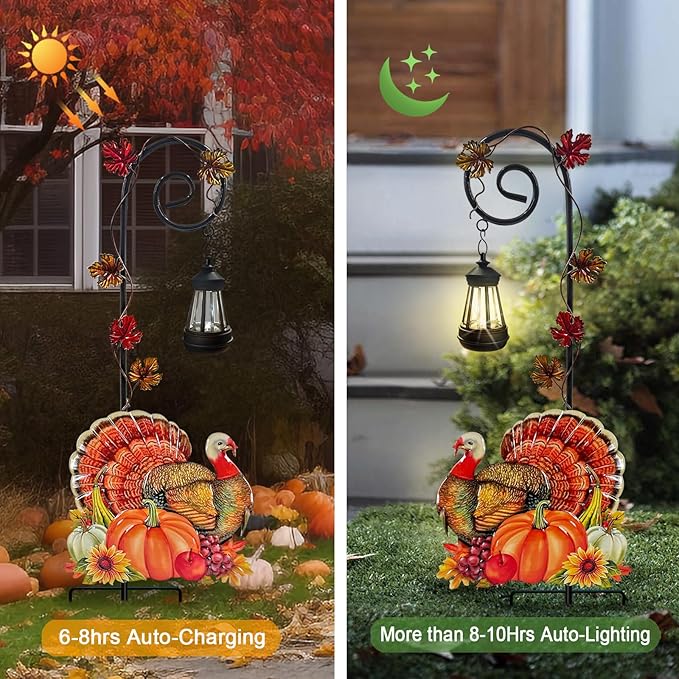 The turkey yard art with solar lantern outdoor pathway feature ensures energy-efficient illumination,automatically lighting up at dusk to create a cozy ambiance for your harvest porch or garden decor.