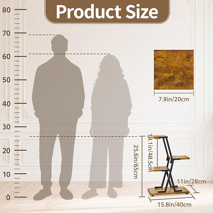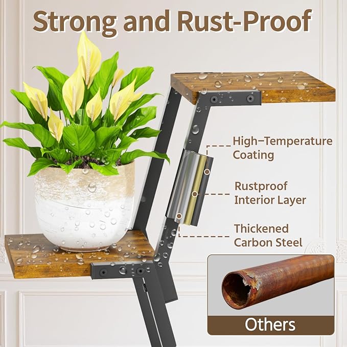【Rock-Solid Strength】Engineered with reinforced iron framing and thinken wood panels, the plant stand indoor supports 50 % more weight than most fragile stand. Display even the heaviest concrete planters on any tier—no shaking, no bending.