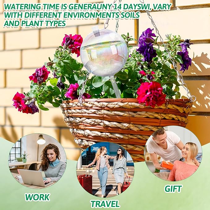 • Versatile Use: Whether you're traveling, on a business trip, prone to forgetting to water your plants, or simply have a busy schedule, our plant watering globes are the perfect solution keep your plants healthy and flourishing with minimal effort and the watering bulbs can also be used with any plant size like hanging plants or patio plants.