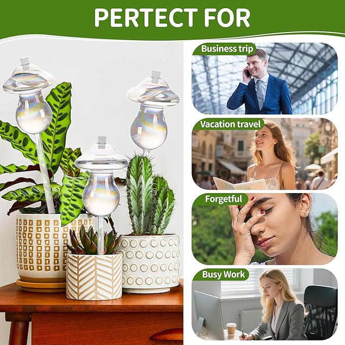 • Sustained and Reusable: The plant watering devices are made of quality glass, not easy to break and deform. These plant bulbs for watering work in all settings indoors or outdoors, mushroom watering globes design with creative style adds a natural touch to your home