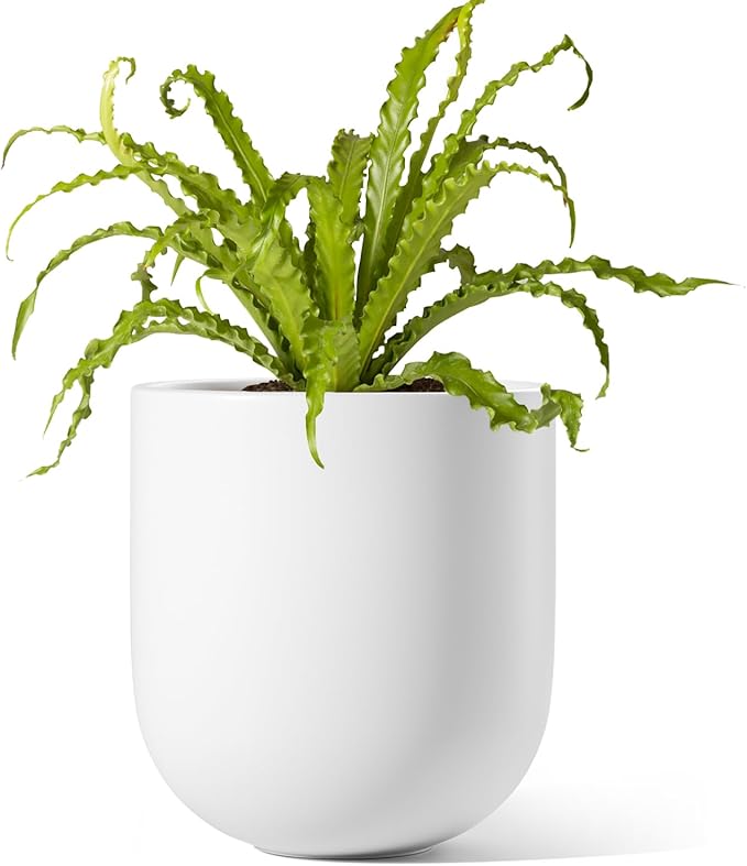 Durable High-Fired Ceramic: Hand-crafted stoneware ceramic planter with smooth matte white glaze; scratch-resistant surface and stable weight keep this indoor planter looking new