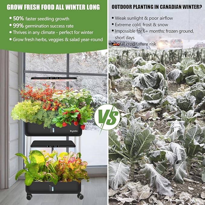 Complete Starter Set – Seeds Included: Comes with 3 free seed starter kit to help you begin your indoor growing journey immediately. Including lettuce seeds, salad mixed seeds, and basil seeds. All seeds pre-screened for high germination and water-safe for hydroponic growth.