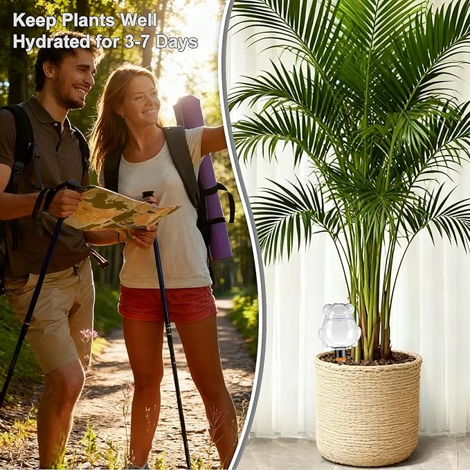 Product Description: This set of 3 self-watering globes provides consistent, hands-off hydration for your plants while you're away. They function as an efficient drip irrigation system, which can reduce water usage by up to 70% and encourage stronger root development through deep, targeted watering