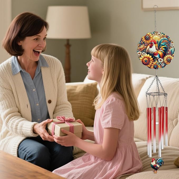 Wind Chimes with Rooster Wind Spinner, Chicken Gifts for Women Mom Friends Sisters Teacher, Metal WindChimes for Outside Home Lawn Porch Patio Garden Outdoor Decor Yard Decorations