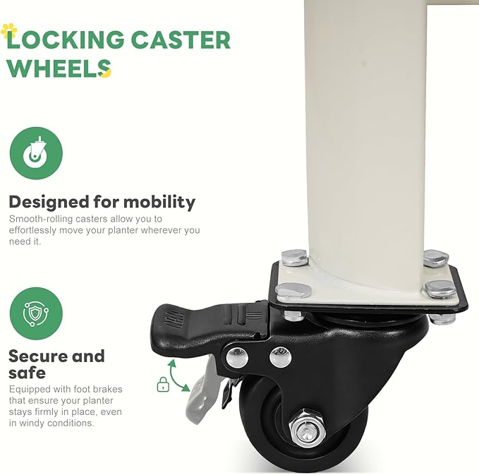 • 【Effortless Mobility & Secure Locking】 Move your garden effortlessly with our 4 smooth-rolling wheels, designed for various surfaces. Raised garden bed with locking wheel brakes securely hold your planter in place, preventing unwanted movement and ensuring stability on patios, balconies, or decks