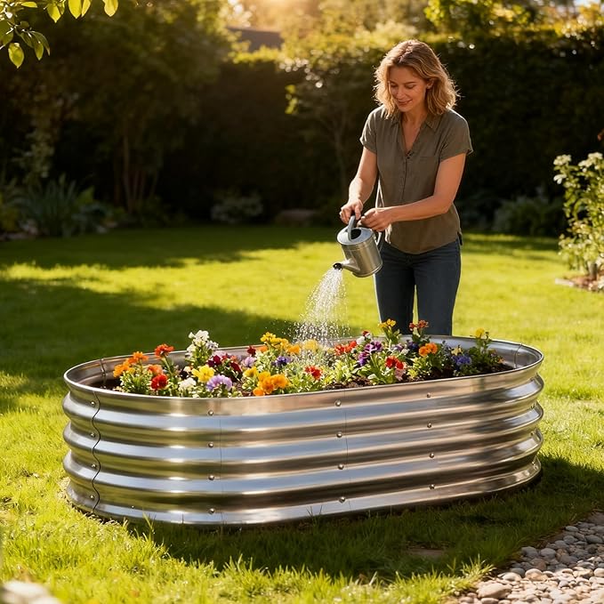 Discover the ergonomic elegance of our oval design—engineered for stress-free gardening and visual appeal. Raised flower bed features a heavy-duty construction using secure clamps and bolts, making it the best choice raised garden bed for hassle-free assembling and long-term garden fun, even for beginners or seniors.