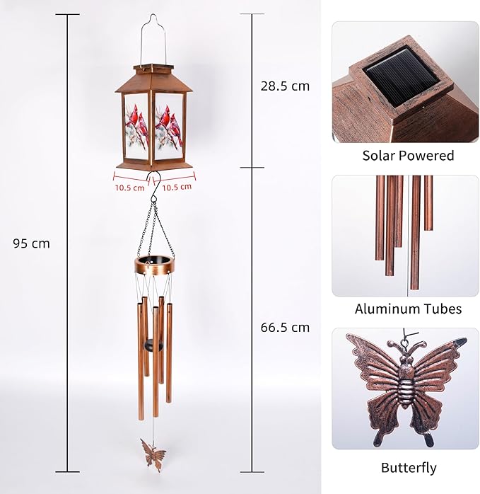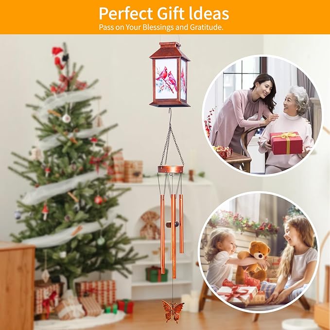 Cardinals Decorative Mobiles Gifts, Solar Cardinals Wind Chimes, Gifts for Mom, Women, Grandma, Garden Courtyard Lawn Decoration, Thanksgiving Gift, Decor Gift for Christmas and New Year