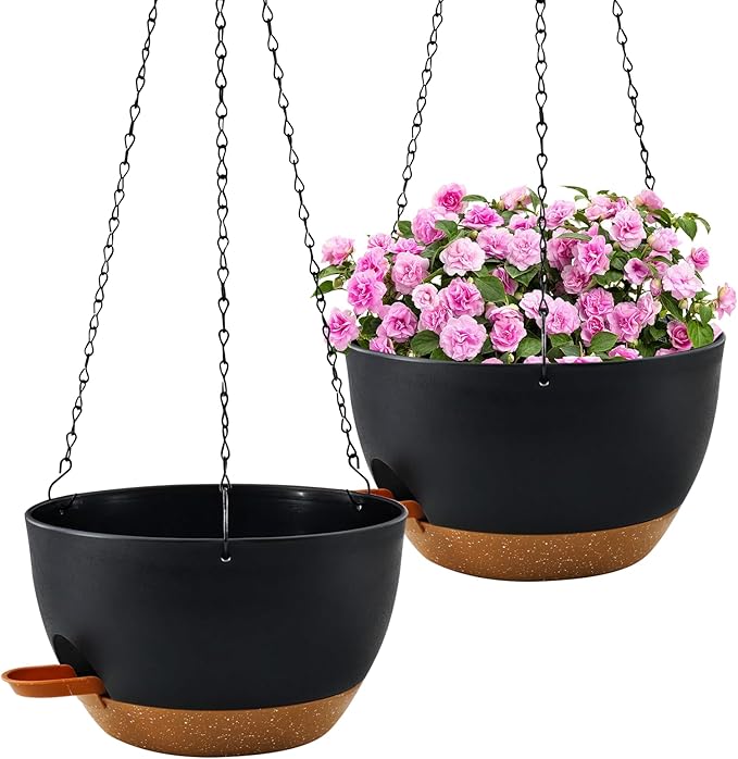 12 inch Hanging Planters for Indoor Plants, 2 Pack Self-Watering Hanging Planter Pots with Chain and Drainage Holes, Outdoor Plastic Hanging Baskets for Garden Home Decor