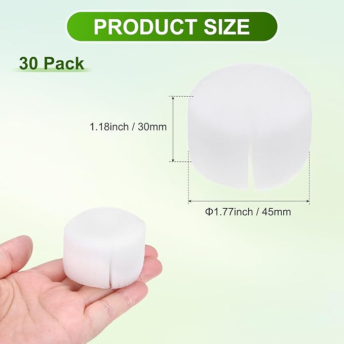 [Size & Package] - This set includes 30pcs of growing media cylindrical sponges. Each measures 45 x 30 mm / 1.77 x 1.18 inch (Dia x H). Sufficient quantity for your various growing needs and replacements