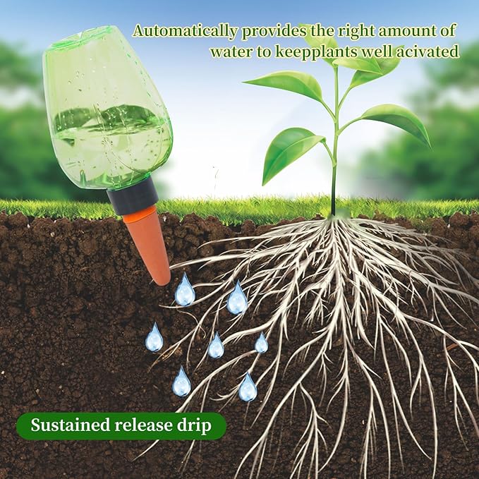 【Easy to use】:The automatic plant irrigator is simple in design and efficient in use. Simply fill with water, insert the globe's watering stake into your potting mix and fill with water, and the porous cone will slowly distribute water throughout the day, ensuring a steady and continuous supply of water for your plants