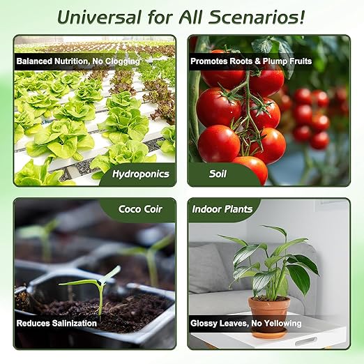 🏡 Easy-to-Use for Various Gardening Scenes: Ideal for both beginners and expert gardeners! Simplify your plant care in hydroponic systems, peat moss, coco coir, and even indoor houseplants. Just dilute the solution as instructed and apply. One bottle meets all your gardening needs, making it a versatile choice for your greenhouse, aeroponics, or home garden.