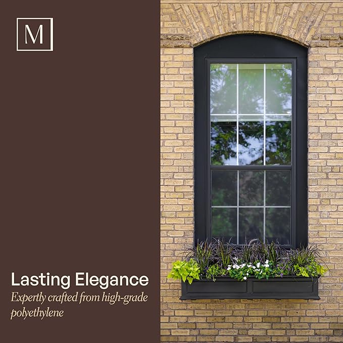 Mayne Fairview 3ft Durable Self Watering Window Box Planter with Wall Mount Brackets, UV & Weather Resistant, Double Wall Design, New England Architecture for Outdoor Décor, Black