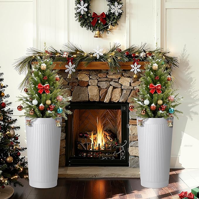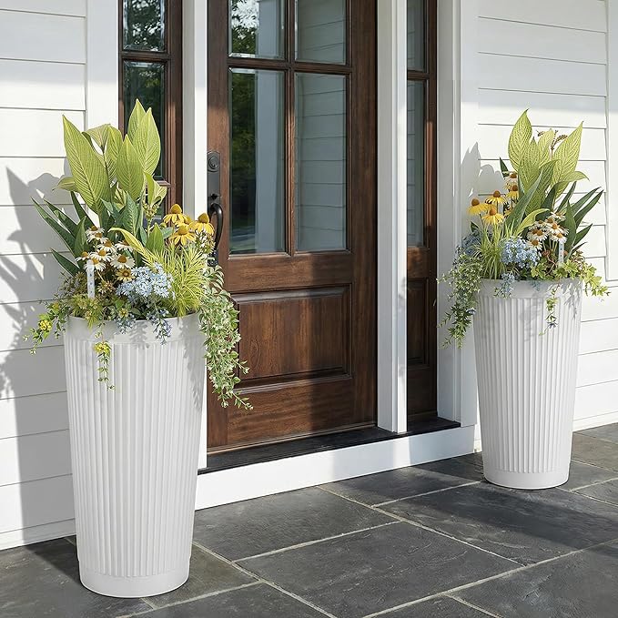 24in Tall Self-Watering Planters Set of 2 - White Flower Pots with Water Level Monitor, Non-Toxic Plastic Planters for Indoor Outdoor Patio, Porch, Living Room, Home Office