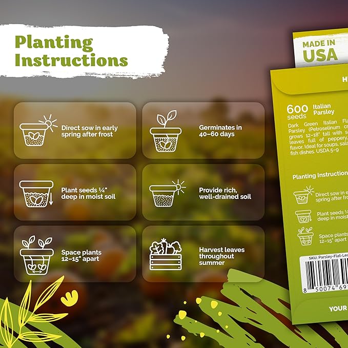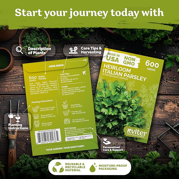 Peppery Citrus Flavor: Italian parsley fresh leaves hold taste for fish, tacos, soups & salads. Enjoy forest-green garnish as fresh herbs, grown in an indoor herb garden, window boxes, or beds.
