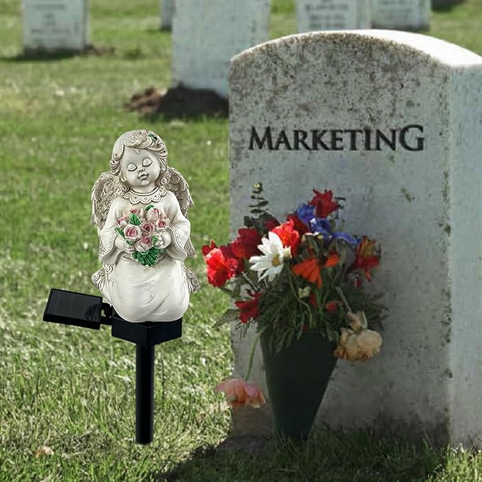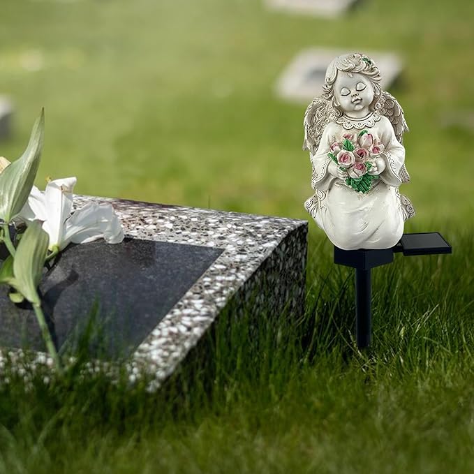 • 【Solar Angels for Cemetery Grave】Solar angel lights are great for decorating gardens, lawns, pathways, patios, sidewalks, fences, backyard decorations and more. It can also be used in graves, cemetery gravesite decorations to honor departed loved ones, relatives.