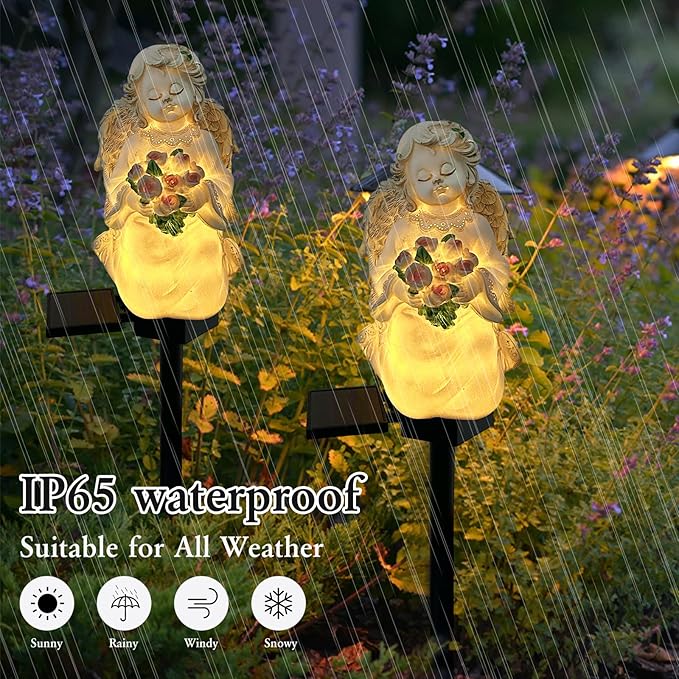 • 【High Quality Resin】Garden angel is made of pure natural resin, detailed carving, fine workmanship, classic retro, durable. With IP55 waterproof design, it can work in most weather conditions.