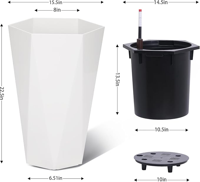 Easy Water Monitoring: Each planter includes a built-in water level indicator and matching tray, helping you track moisture at a glance. Water less often—perfect for busy schedules or travel.