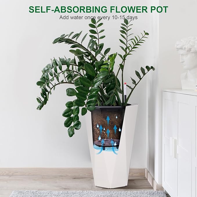 Self-Watering System: A built-in reservoir and drainage system support healthy roots by delivering water as needed. No overwatering, no stress—just happy plants.