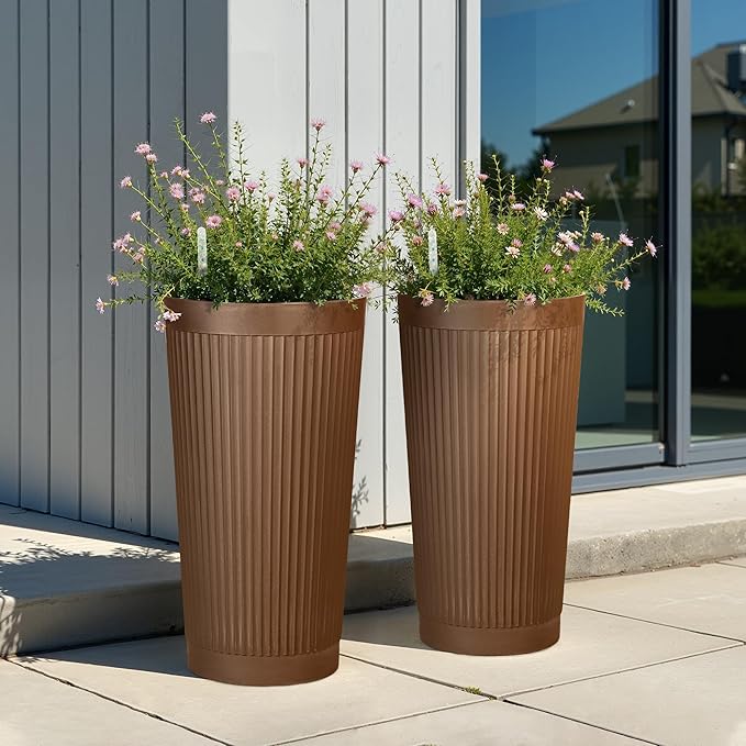 Water Level Monitor: Each tall planter includes a built-in water level monitor, allowing you to check remaining water at a glance. No more guessing or accidentally overwatering—simply refill through the watering port to keep your flower pots healthy and thriving, whether indoors or outdoors.