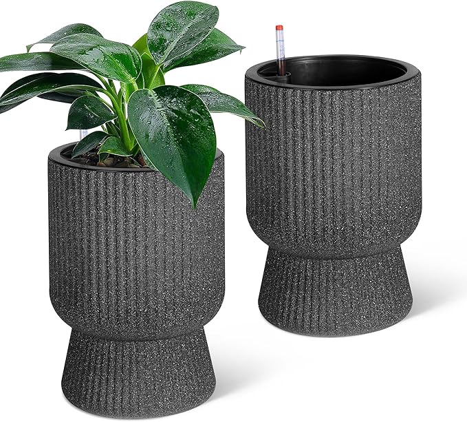 • Premium Quality & Weather-Resistant: Set of 2 tall frost-resistant planters with water level monitors. Specially treated exterior prevents fading, keeping your outdoor space vibrant through every season.