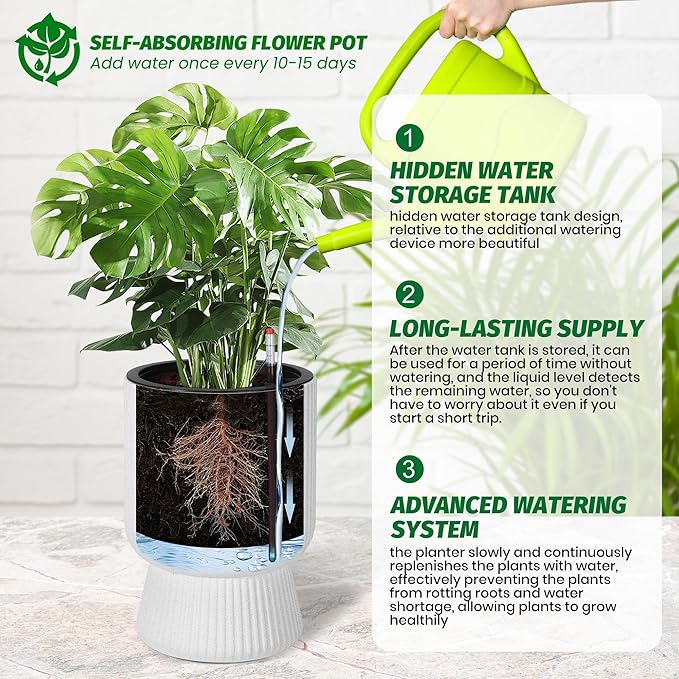 Hidden Self-Watering Storage: Discreet water reservoir maintains neat aesthetics and provides even, continuous moisture—ideal for plants that prefer consistent hydration, while preventing overwatering and root rot.
